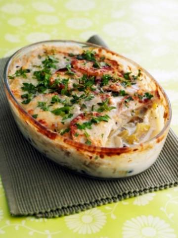1. You can use raw chicken as well. Cut the chicken breasts into fine cubes and mix it with other ingredients in a bowl. Bake for 30 minutes or until done.