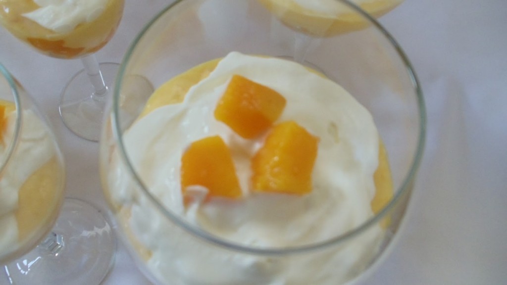5. Pour this into moulds or souffle glasses. Top with cream and mango slices or cubes.