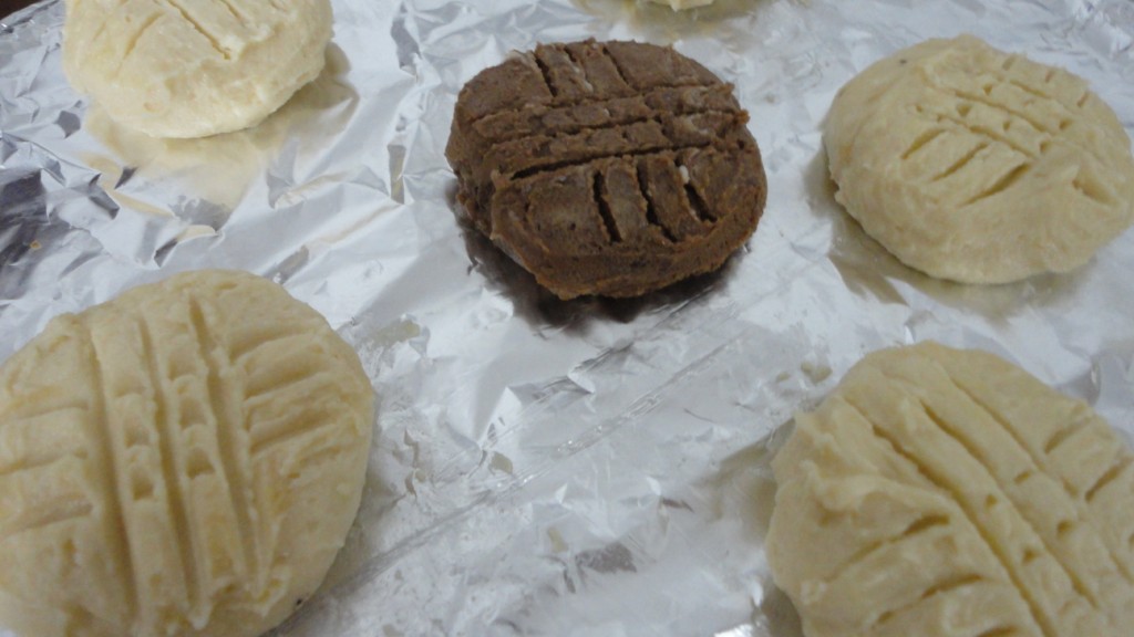 4. Make small round balls and place them on a baking sheet. Flatten them slightly. Leave enough space between the cookies as the cookies increase in size during baking. If you don’t have a baking sheet or dish, use an oven wired rack and cover it will two layers or aluminium foil. (That’s what I did 🙂 ).