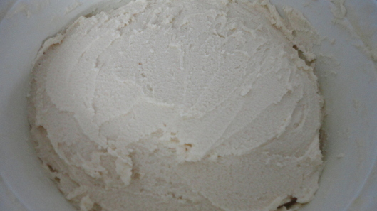 3. Sift the plain flour and the corn flour and add to the butter. Mix till the batter is thick and smooth (this will take a while and a little effort).